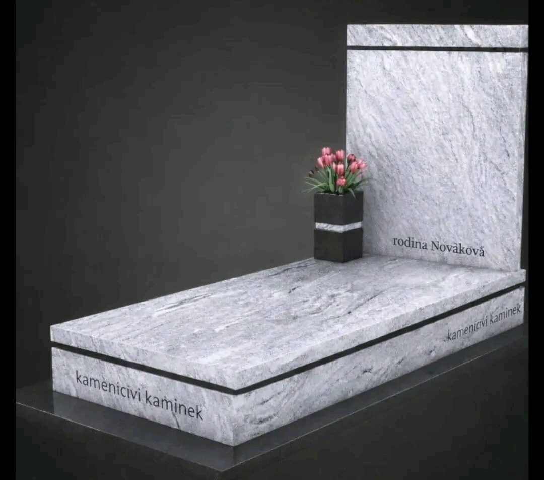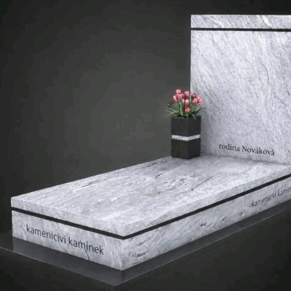 Světlý žulový jednohrob s deskou a vázou – Karviná“ -