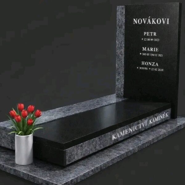 Černý lesklý žulový jednohrob s tvarovanou deskou – výroba a montáž Karviná -