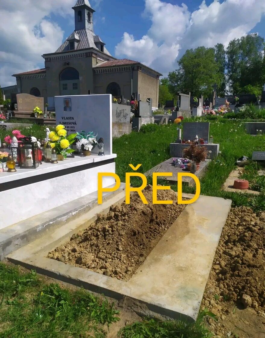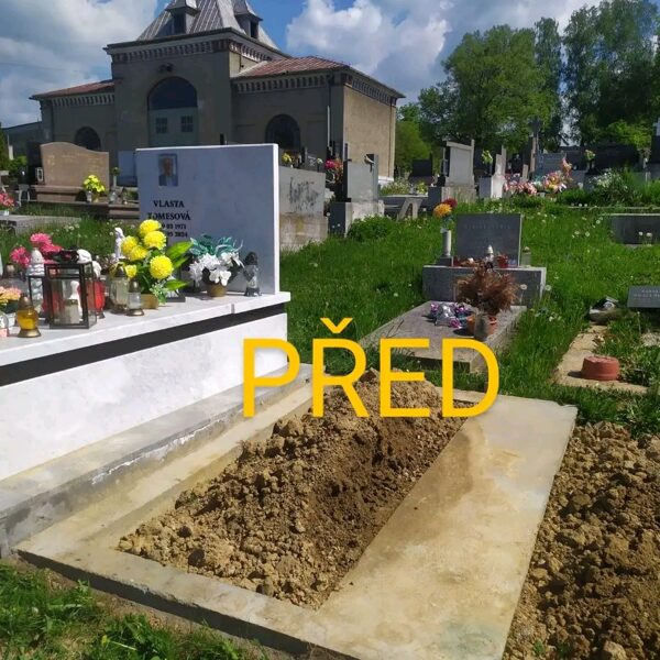 „Nový světlý žulový hrob Karviná – kompletní výstavba hrobu na klíč (Před a Po)“ -